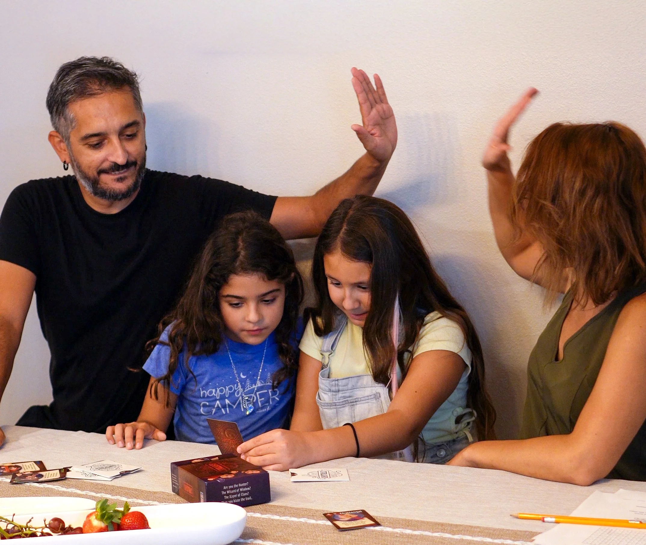 Completely up to you! Most hunts use 8–10 cards, which makes for about an hour of fun. The Key Code Index makes it easy to pick hiding spots that fit your home, so you’re always in control of the trail.