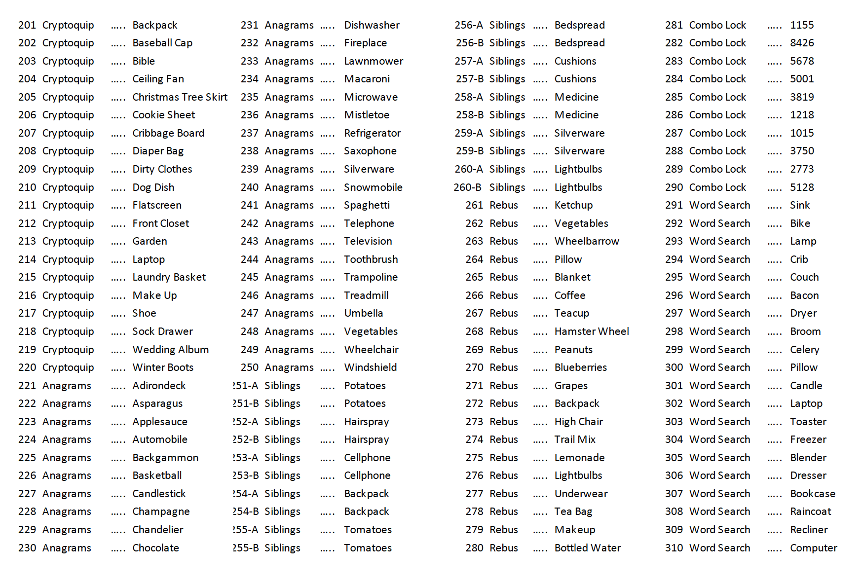 These are the Word Puzzles of GiftTrails. Each puzzle will lead to the indicated next hidden location as you set up your trail.