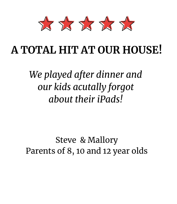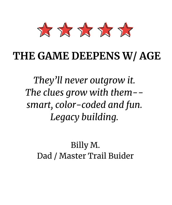 Your entire home becomes the playground, with hundreds of hiding spots represented on the clue cards — perfect for apartments, houses, or anywhere in between. But the heart of the game is the kitchen table. That’s where the Trail Master sits back and enjoys the laughter, shouts, and excitement as kids race from clue to clue. Each clue is tucked into a sleeve (included with the game) so players return to the table before the next step is revealed. Word puzzles and challenges are solved right there too, keeping the family gathered while the adventure unfolds around them. Parents and grandparents don’t have to chase — just watch the fun happen.