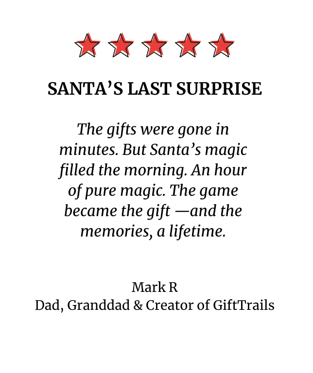 Every clue builds suspense until the final surprise. It’s more than a present — it’s a story your family will talk about for years.