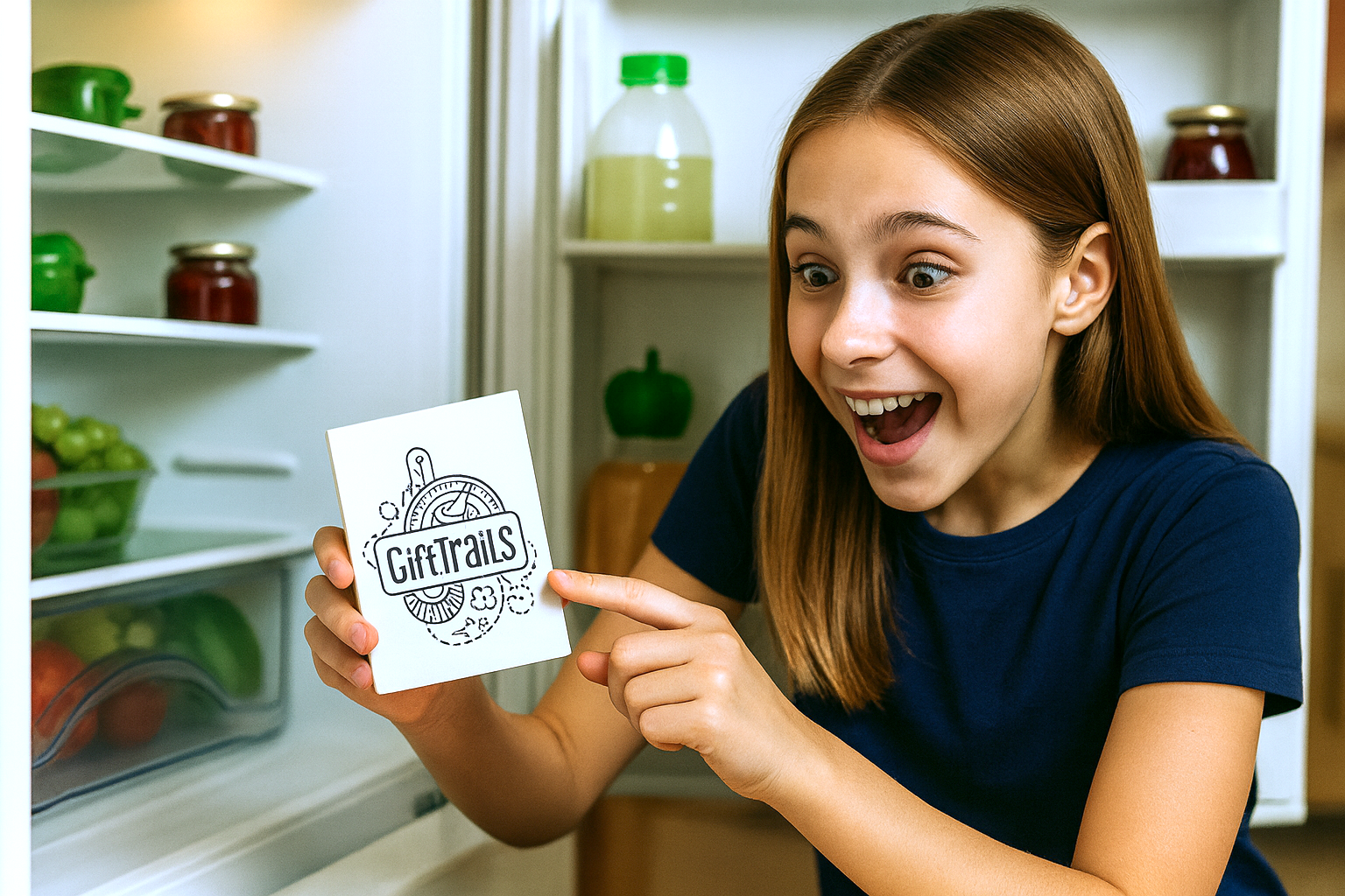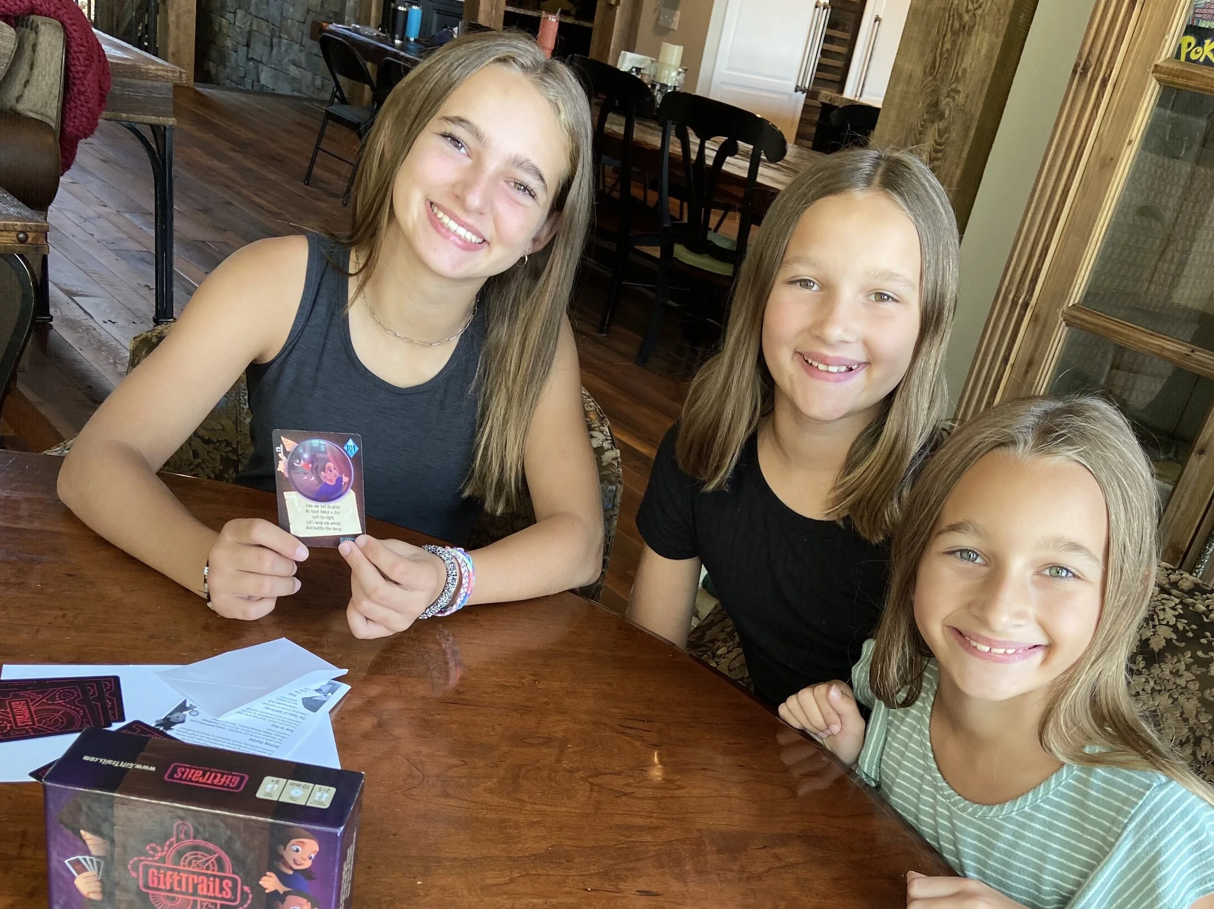 The kitchen is where the magic happens. The full range of emotions. The reason for the Sleeves is to preserve the reading of each new riddle until the Hunter returns each time to the kitchen table. The facial expressions will range from excitement to frustration, impatience to discovery, and finally, joy. The kitchen table is the magic in the bottle inside the game of GiftTrails.